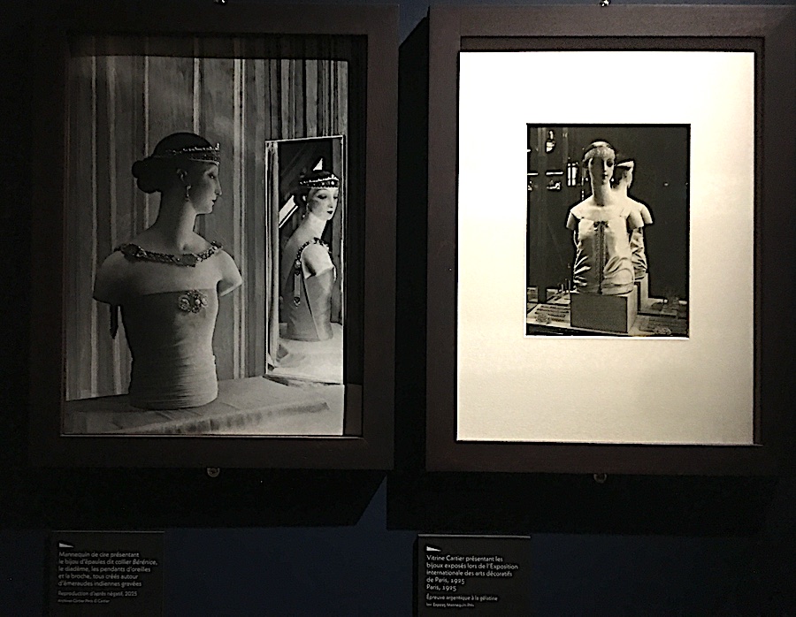 Mannequins de cire présentant des bijoux de chez Cartier.