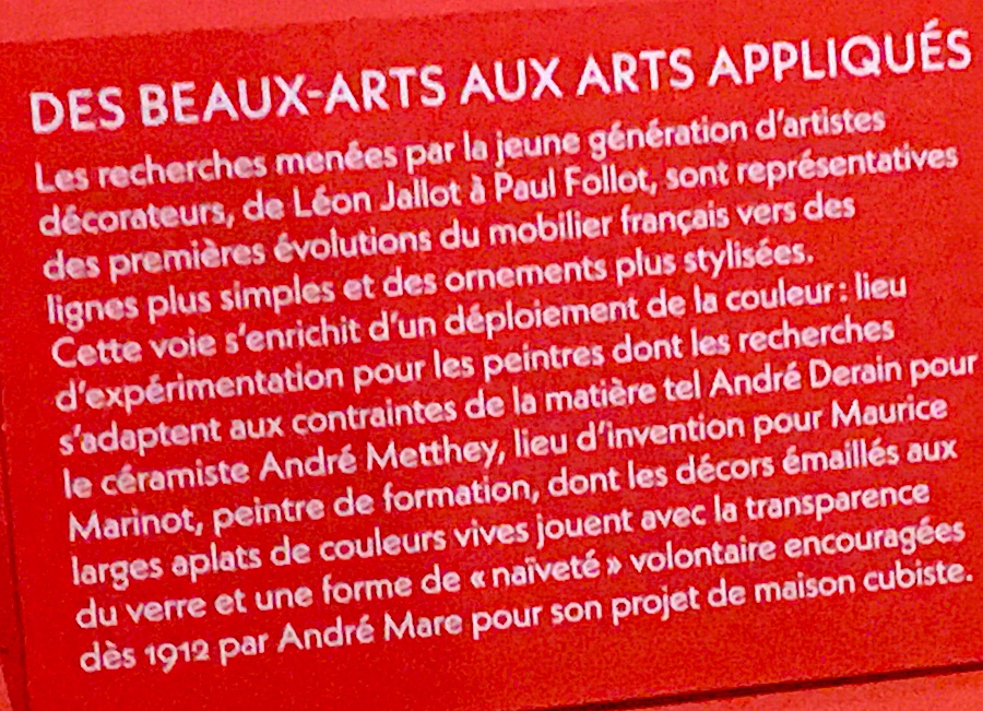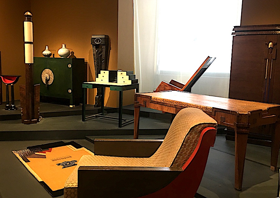 Dans cette foisonnante (peut-être un peu trop…) exposition, tous les domaines de la création artistique et de la décoration sont présentés : les verreries, la tabletterie, les arts de la table, illustrés par des pièces à la modernité saisissante. Le rôle fondamental du dessin est mis en lumière à travers des projets décoratifs, d’architecture intérieure et de mobilier.