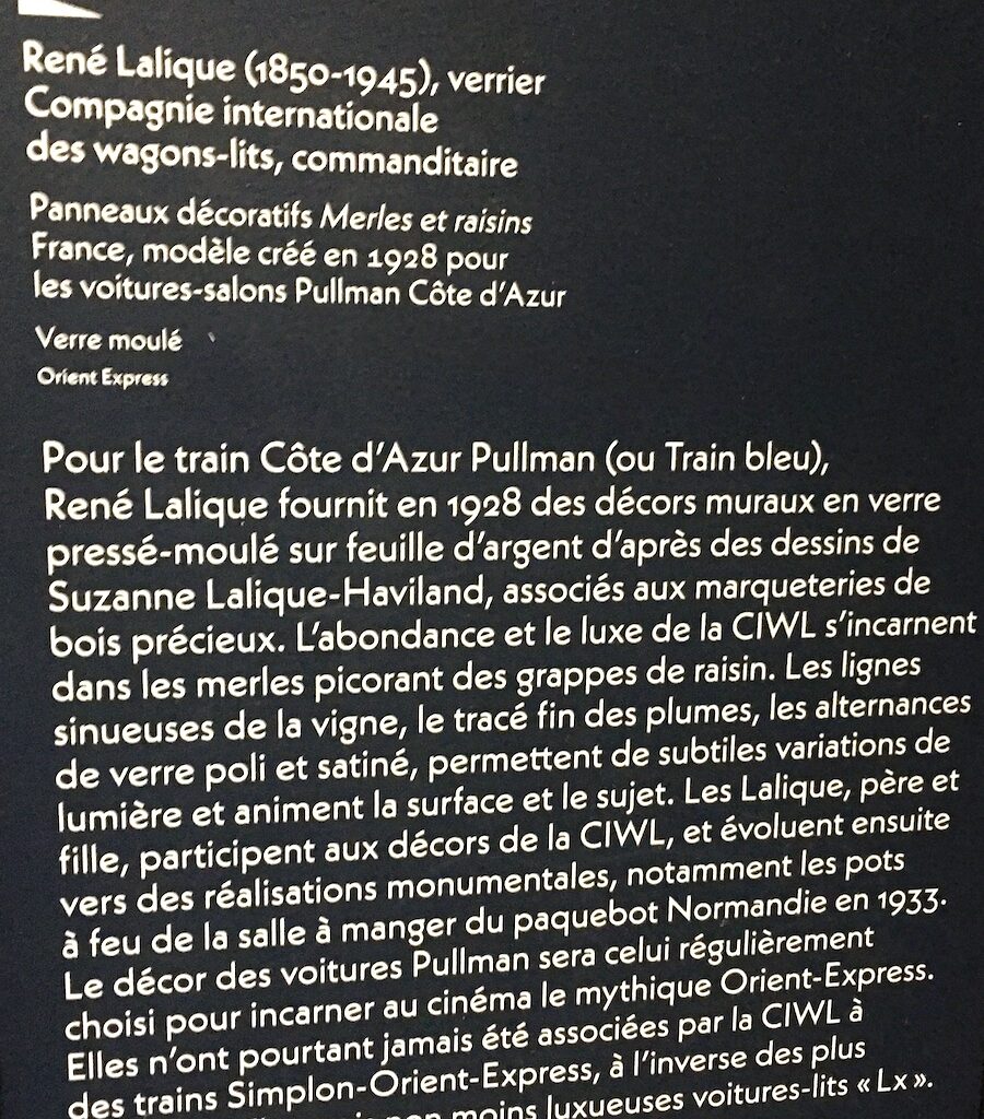 Symbole du voyage raffiné et du savoir‐faire français, l’Orient Express connaît son âge d’or dans les années 1920. Décoré par de grands artistes comme René Prou ou René et Suzanne Lalique, il devient un manifeste roulant de l’esthétique Art déco.