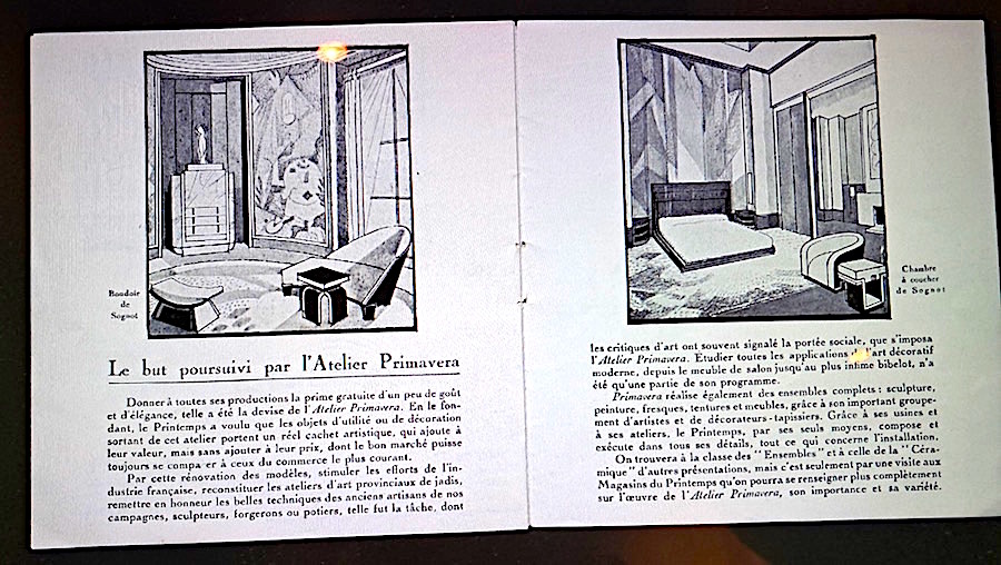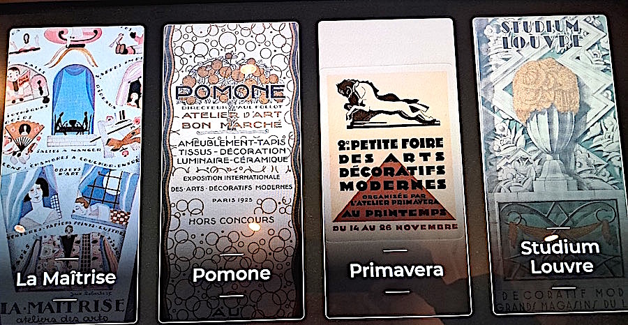 Dans le cadre de la commémoration du centenaire de l’Exposition Internationale des Arts Décoratifs et Industriels Modernes, la Bibliothèque Forney à Paris, spécialisée dans les beaux-arts, les arts décoratifs et les métiers d’art, présente jusqu’au 28 février 2026, une exposition sur les ateliers d’art de quatre grands magasins parisiens : « Primavera » du Printemps, « Pomone » du Bon Marché, « La Maîtrise » des Galeries Lafayette et « Studium Louvre » des Grands Magasins du Louvre.