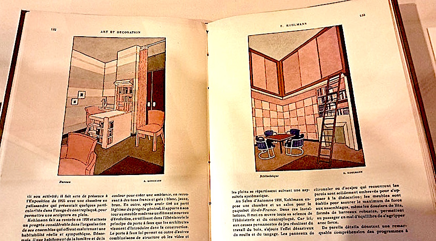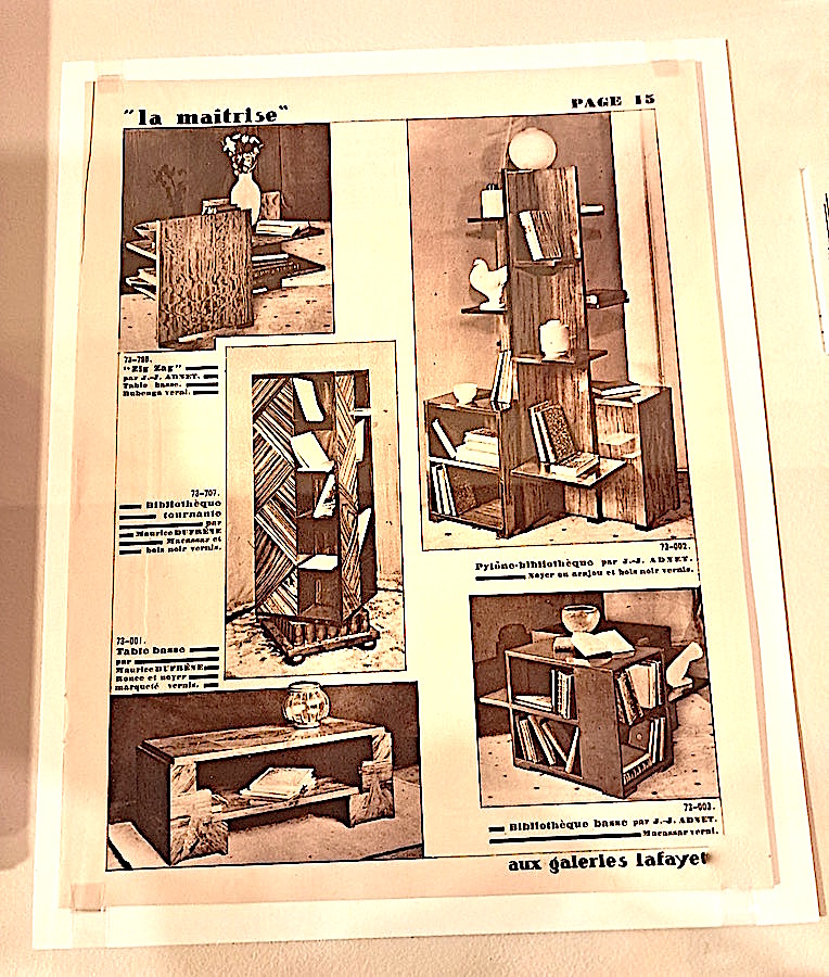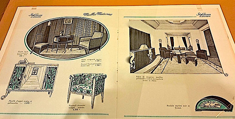 Les décorateurs ont fait travailler tous les plus grands artistes qui inventent l’Art déco dans les domaines du mobilier, des tissus, de la céramique, du verre…  Les catalogues commerciaux, affiches, papiers peints, photographies, objets publicitaires, catalogues d’expositions, périodiques, cartes postales…