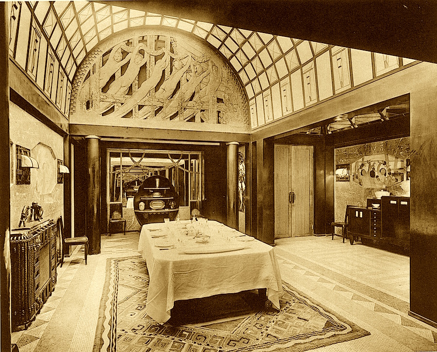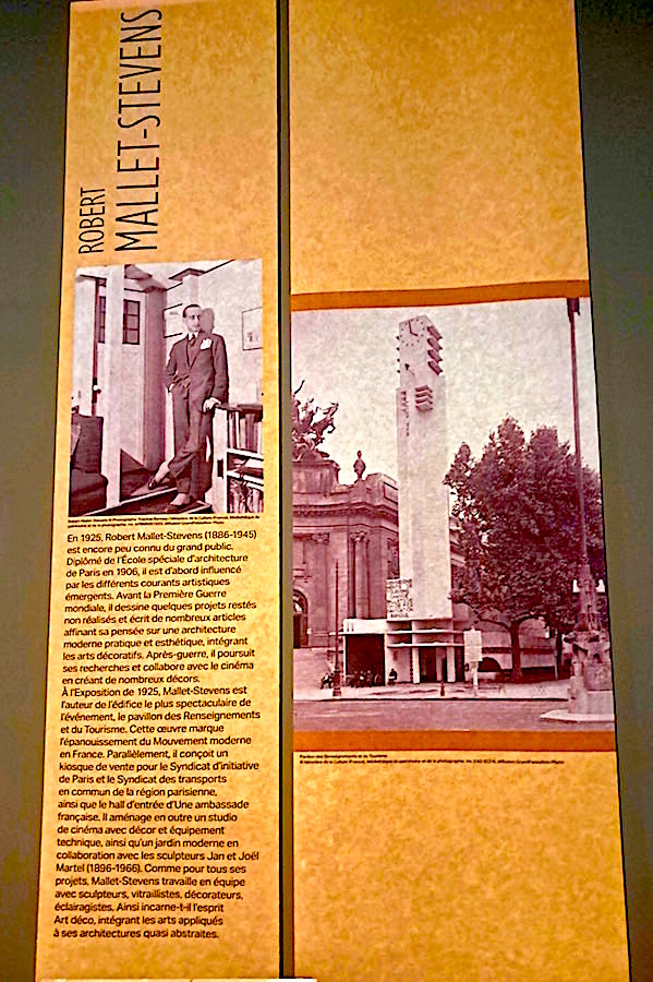 • Robert Mallet Stevens : En 1925, Robert Mallet-Stevens (1886-1945) est encore peu connu du grand public. Diplômé de l’École spéciale d’architecture de Paris en 1906, il est d’abord influencé par les différents courants artistiques émergents. Dans tous ses projets, Mallet-Stevens travaille en équipe avec sculpteurs, maîtres-verriers, décorateurs, éclairagistes. Il est celui qui incarne l’esprit Art déco, intégrant les arts appliqués à ses architectures quasi abstraites.