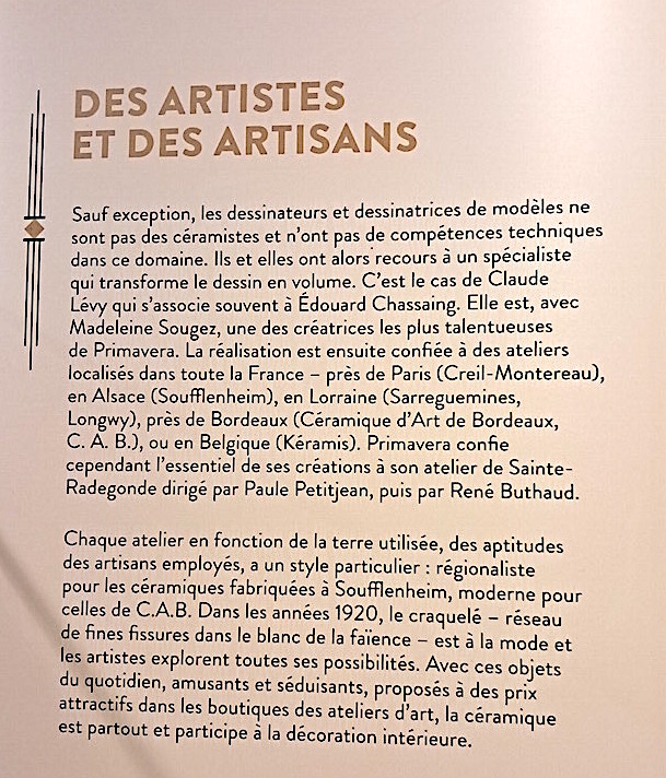 • Créés entre 1912 et 1922, les ateliers de création sont dirigés par des artistes décorateurs renommés : Charlotte Chauchet-Guilleré, Paul Follot, Maurice Dufrène, Étienne Kohlmann.