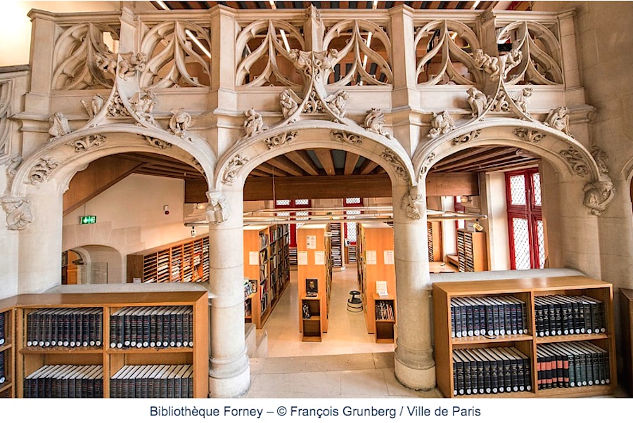 La bibliothèque Forney installée depuis 1961 dans l’hôtel de Sens – rare vestige de l’architecture médiévale civile à Paris – a été fondée à la fin du XIXe siècle grâce à un legs fait à la Ville de Paris par Aimé-Samuel Forney, un industriel soucieux de revaloriser la situation des métiers d’art et de favoriser l’éducation des artisans. La bibliothèque Forney est l’une des grandes bibliothèques patrimoniales de la Ville de Paris.