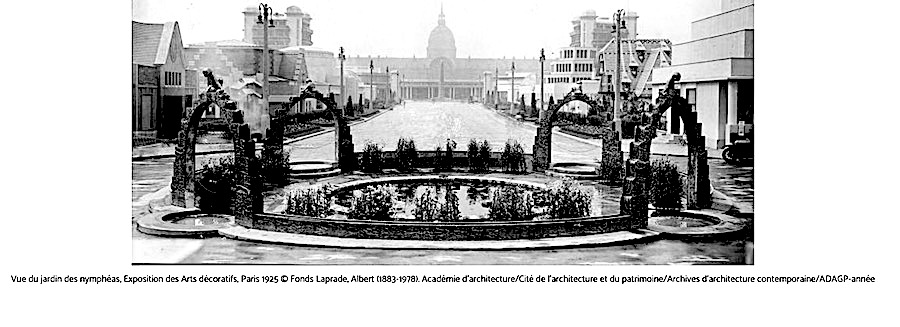 Albert Laprade fait partie des premiers rénovateurs contemporains de l’art du jardin et crée à l’Exposition de 1925 deux jardins éphémères : le bassin des Nymphéas au centre de l’esplanade des Invalides et le jardin des Oiseaux, inspiré par les jardins marocains.