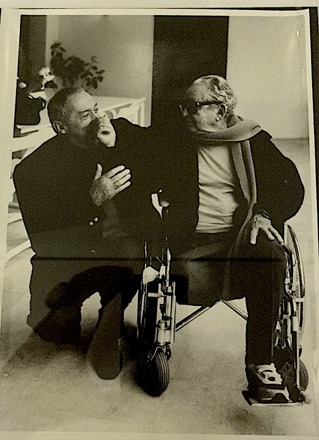 La photo « Les pains de Picasso » a une histoire : « Picasso aura été l’un des meilleurs modèles qui soient entrés dans ma petite boîte noire… Quand j’arrive chez lui à Vallauris, le matin, après avoir roulé toute la nuit, il est entrain de prendre son petit déjeuner. Sur la nappe, deux petits pains en forme de mains. ‘’ Vous voyez, c’est une idée de boulanger, ils n’ont que quatre doigts. C’est pour cela qu’il les a baptisés des Picasso ‘’. Comme il paraissait d’excellente humeur, j’ai osé mettre un pain de chaque côté de son assiette. Il a fait le geste que je souhaitais, mettant les bras au ras de la table avec les pains dans leur prolongement… Avec Picasso, c’était bien facile, il suffisait de lui tendre un accessoire, il improvisait immédiatement un pas de deux… Impatient jusqu’à me dire ‘’Qu’attendez-vous ?’’. Précisément, j’attendais qu’il me dise ‘’qu’attendez-vous ?’’ » Extrait du livre « Robert Doisneau – A l’imparfait de l’objectif – souvenirs et portraits » Editions Babel 1989 »