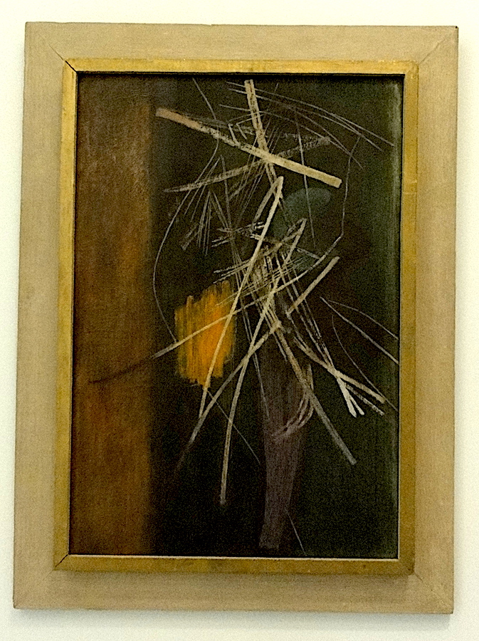 Fernand Léger: « La Forêt » (1942) peinture réalisée pendant l’exil à New-York. Le tableau est dominé par une sorte de croix bleue, élément récurrent dans l’œuvre de F. Léger représentant une barrière et symbolisant l’intervention humaine dans le paysage…