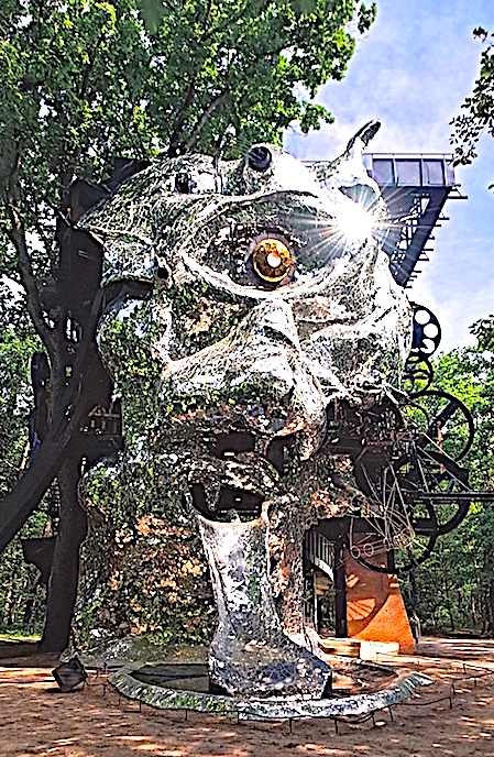 A la fin des années 1960, Jean Tinguely imagine, avec Niki de Saint Phalle et l’artiste suisse Bernhard Luginbühl, réaliser en secret une tête monumentale, « un monstre », au cœur de la forêt, dans l’Essonne.