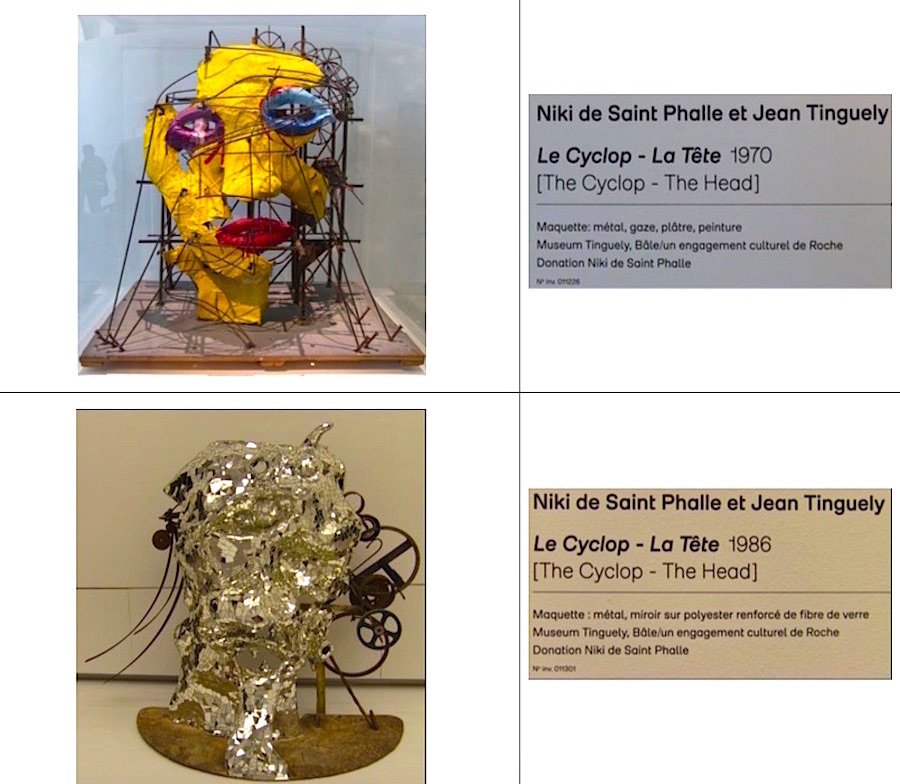 L’exposition se déploie sur deux niveaux : au premier niveau, c’est l’histoire de la rencontre entre Niki de Saint Phalle, Jean Tinguely et Pontus Hulten. Au second niveau, nous parcourons l’exposition « Tinguely », Centre Pompidou, Paris, 1988-1989 puis l’exposition « Niki de Saint Phalle », Centre Pompidou, Paris, 1980.