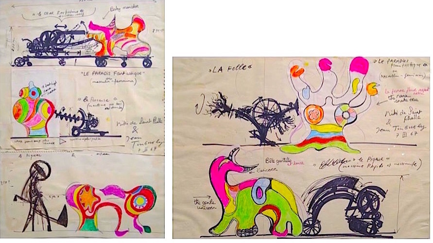 Très vite, Niki de Saint Phalle, en couple avec Jean Tinguely, complète ce duo artistique.